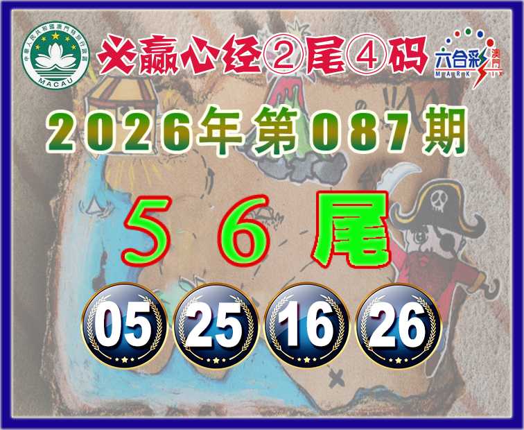 087期:『必赢心经』 🥽②尾④码🥽【56尾主:05.25.16.26】开:26