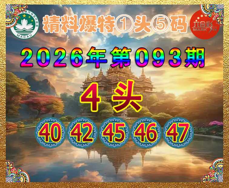 093期:『精料爆特』 🏵️①头⑤码🏵️【4头主:40.42.45.46.47】开:40